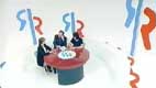 Corner of newscast features ITV, BBC and ITC logos which explode/fragment.
