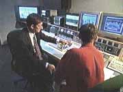 we would then lose information from the sides. Broadcasters used to adopt the practice of what we call "panning and scanning". And what that means is the original movie picture contained too much information to fit in to the ordinary television screen, and so broadcasters had to select from that bigger picture the parts that were essential for the viewer to see. But, by definition, it means we had to throw away quite a lot of the image and in that sense the viewer was being cheated. Watching a widescreen programme on a conventional TV there will be bands top and bottom; a widescreen programme will completely fill the screen of a widescreen television set. |